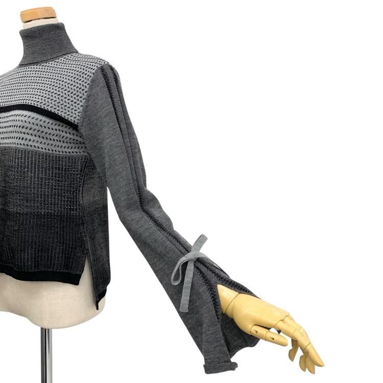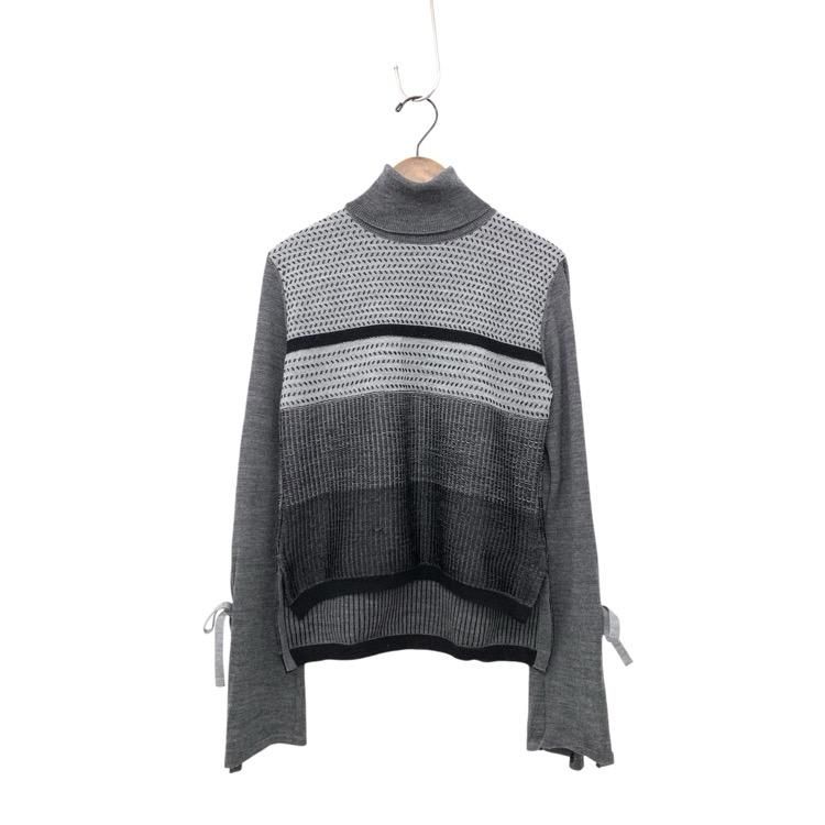 Mame Kurogouchi マメクロゴウチ 刺し子刺繍ニットトップス セーター グレー 2 MM17AW-KN502