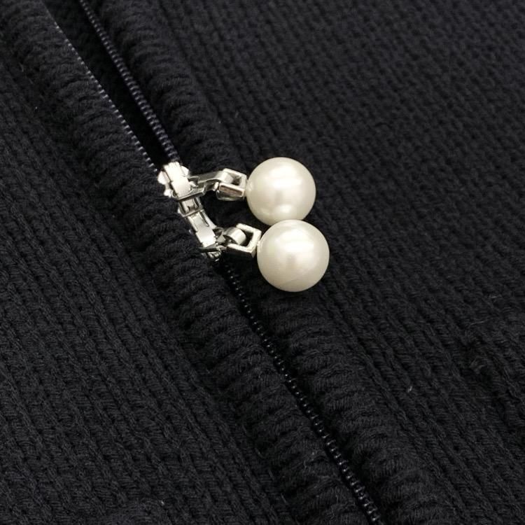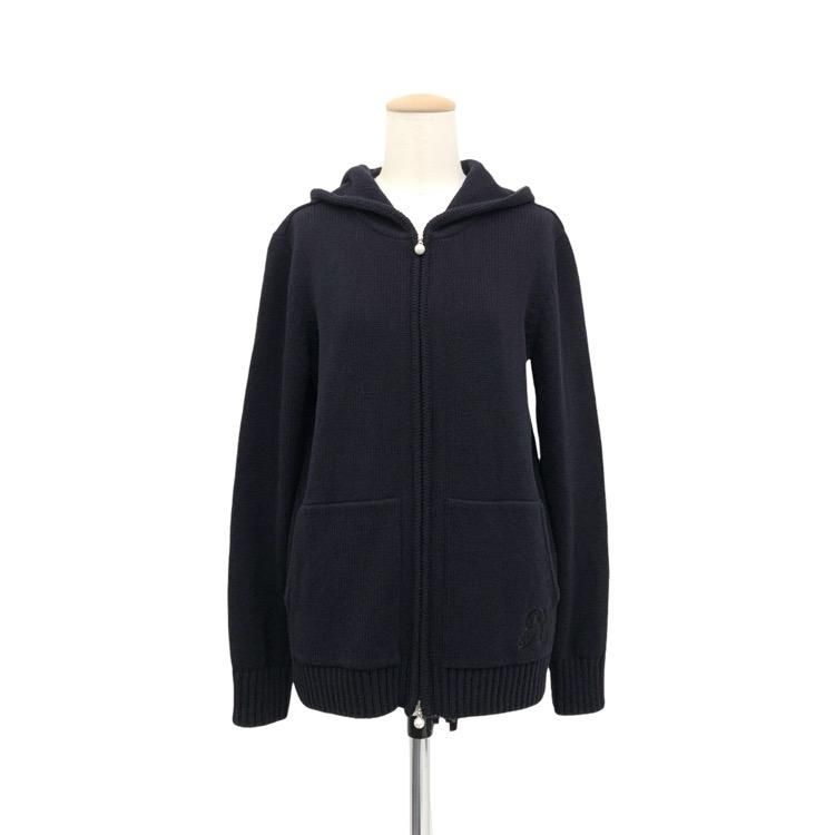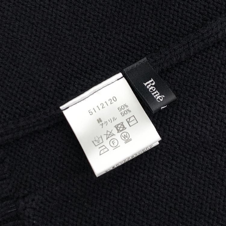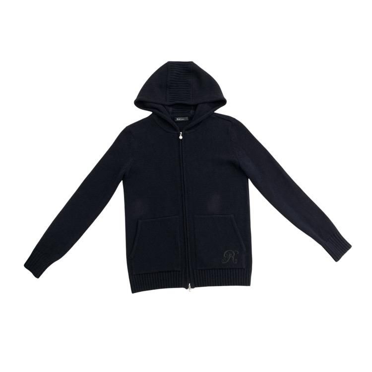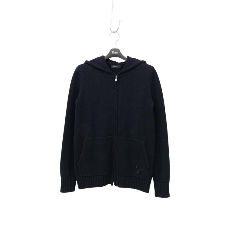 Rene ルネ R刺繍 コットンニット カーディガン フーディ パールスライダー ネイビー 34 5112120