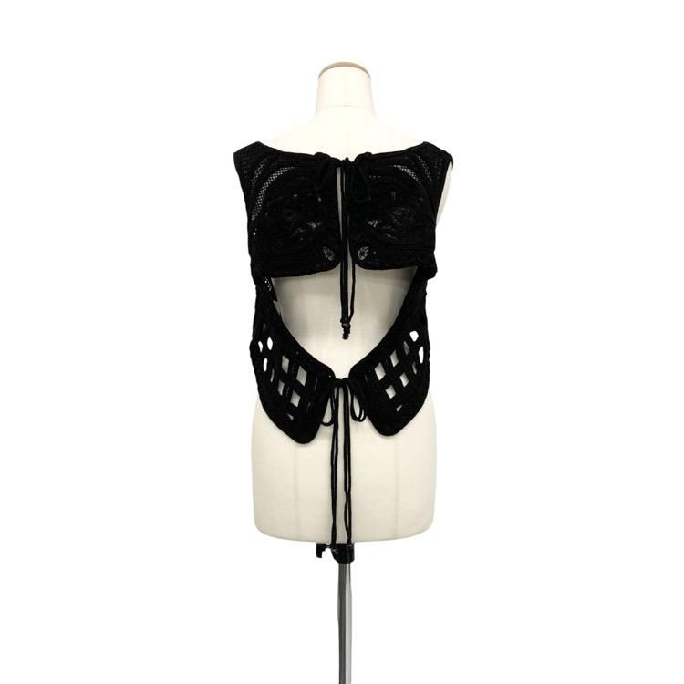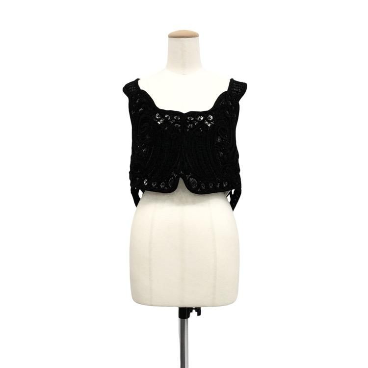Mame Kurogouchi マメクロゴウチ Cord Embroidery Vest コード刺繍ベスト ブラック 1 MM22FW-SH037