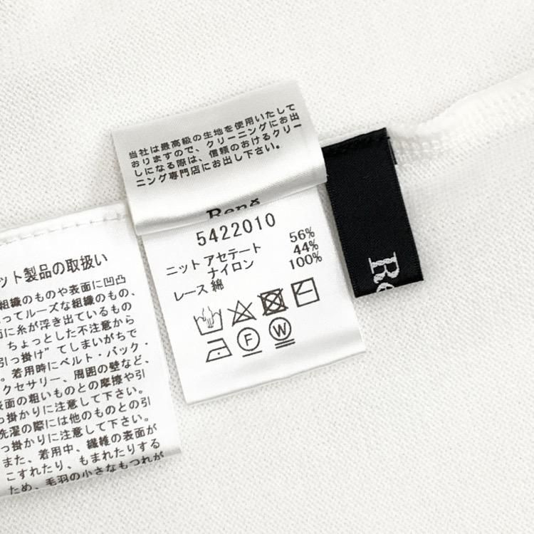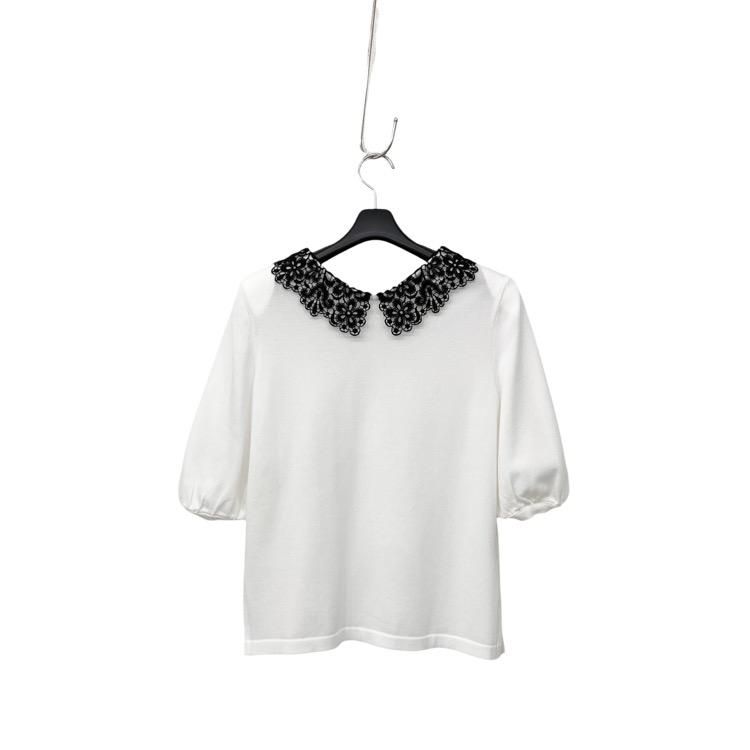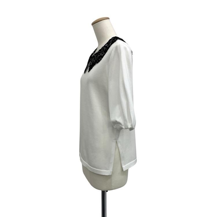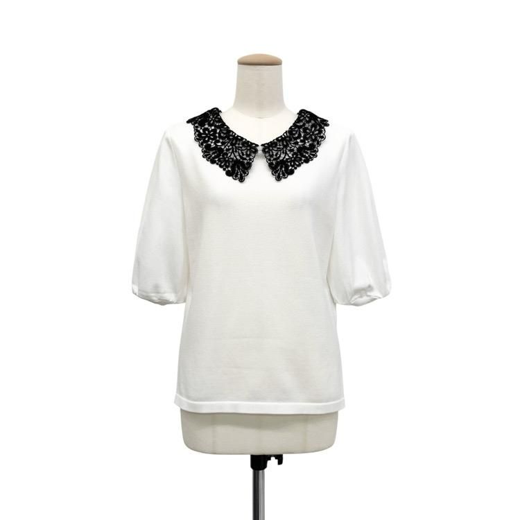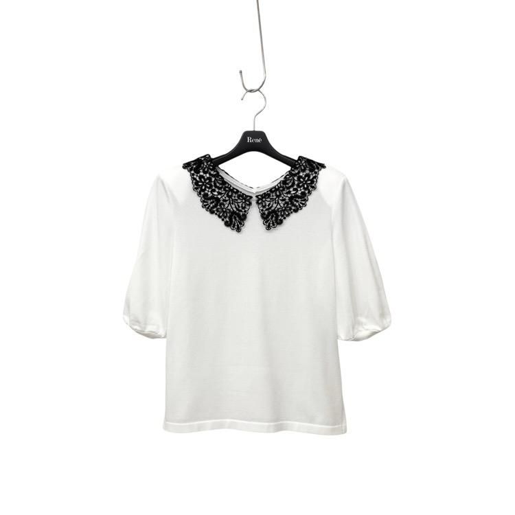Rene ルネ レース襟ニットトップ パフスリーブ カットソー ホワイト 34 5422010