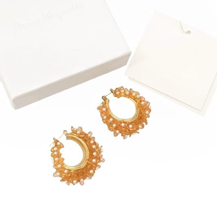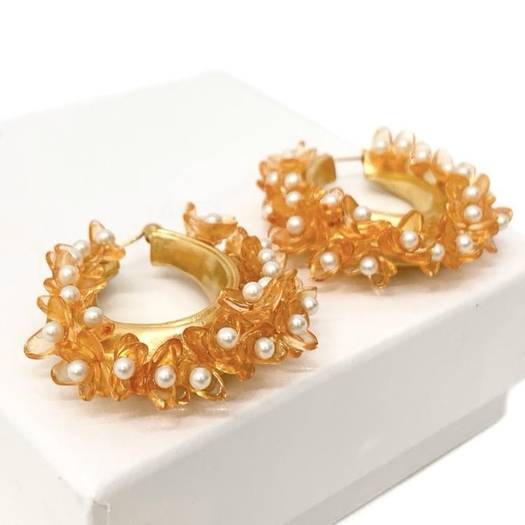 Mame Kurogouchi マメクロゴウチ Osmanthus Motif Earrings 金木犀モチーフ ピアス オレンジ MM21FW-AC304