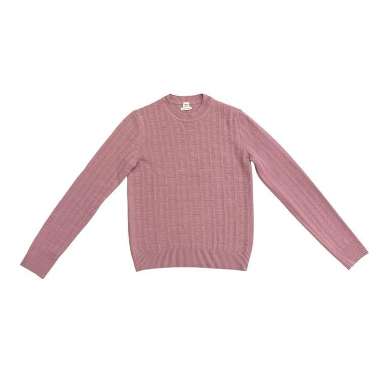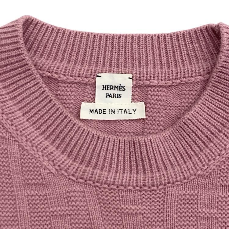 HERMES エルメス クルーネック セーター Hパターン ウール ピンク 36 3E2621DB
