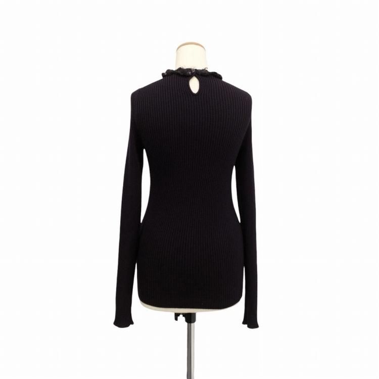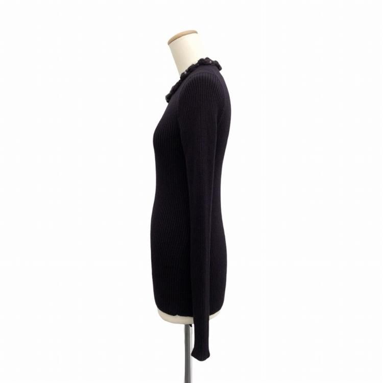 CHANEL シャネル ストーンビジュー付リブニットトップス カシミヤシルク セーター パープル P44878 K04733