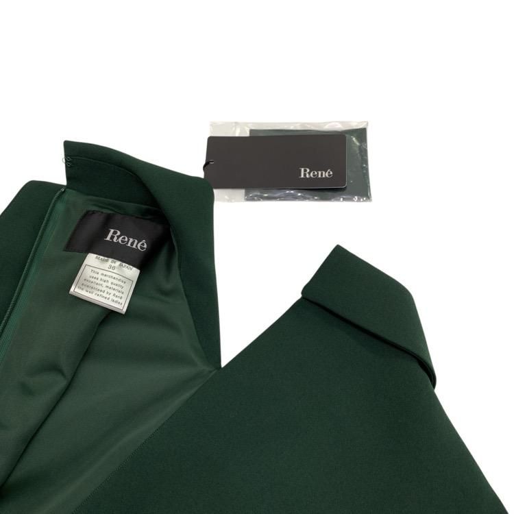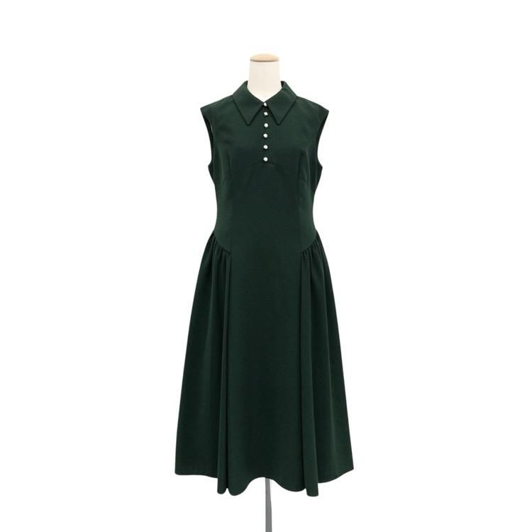 Rene ルネ パールボタン ワンピース 襟付き グリーン 36 534670