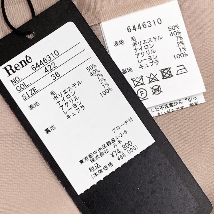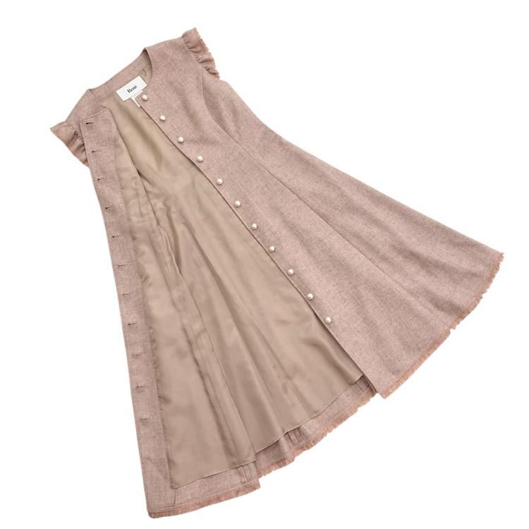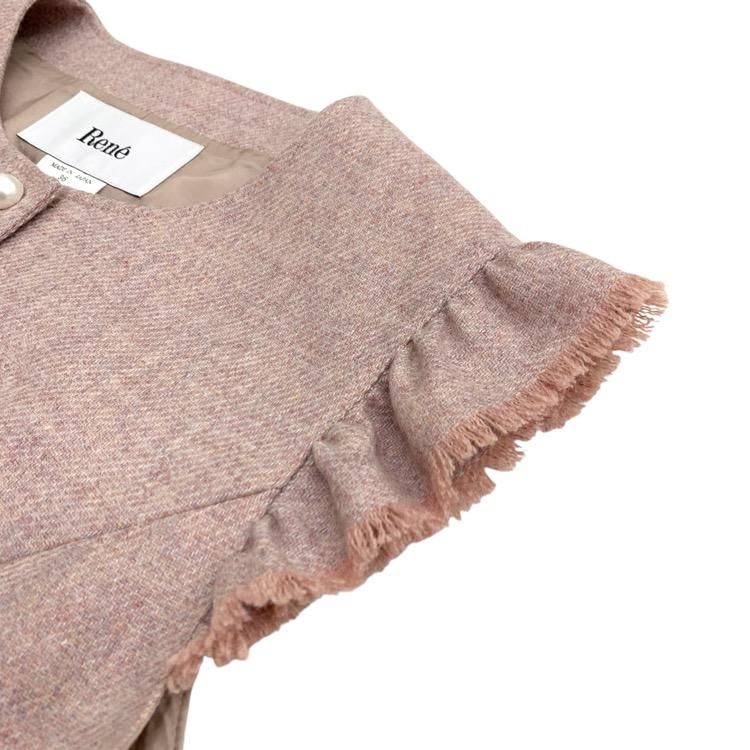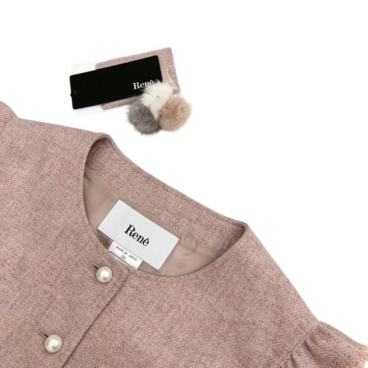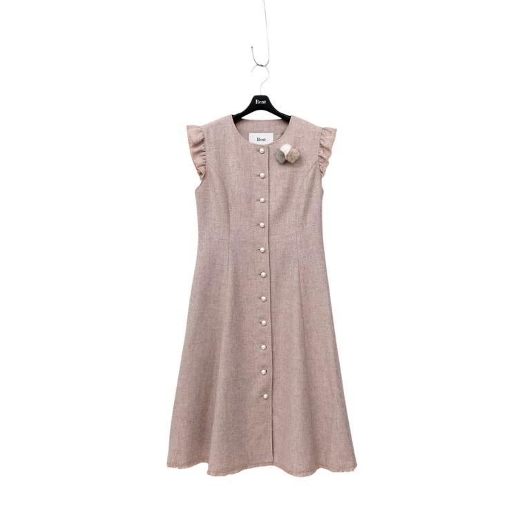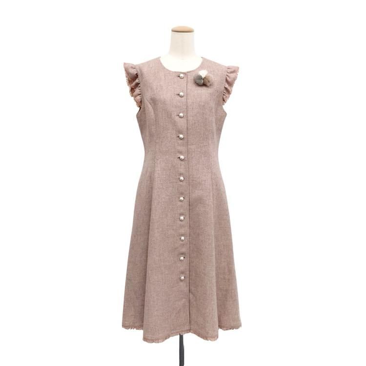 Rene ルネ パールボタン フリンジ ワンピース ミンクブローチ付き ピンク 36 6446310