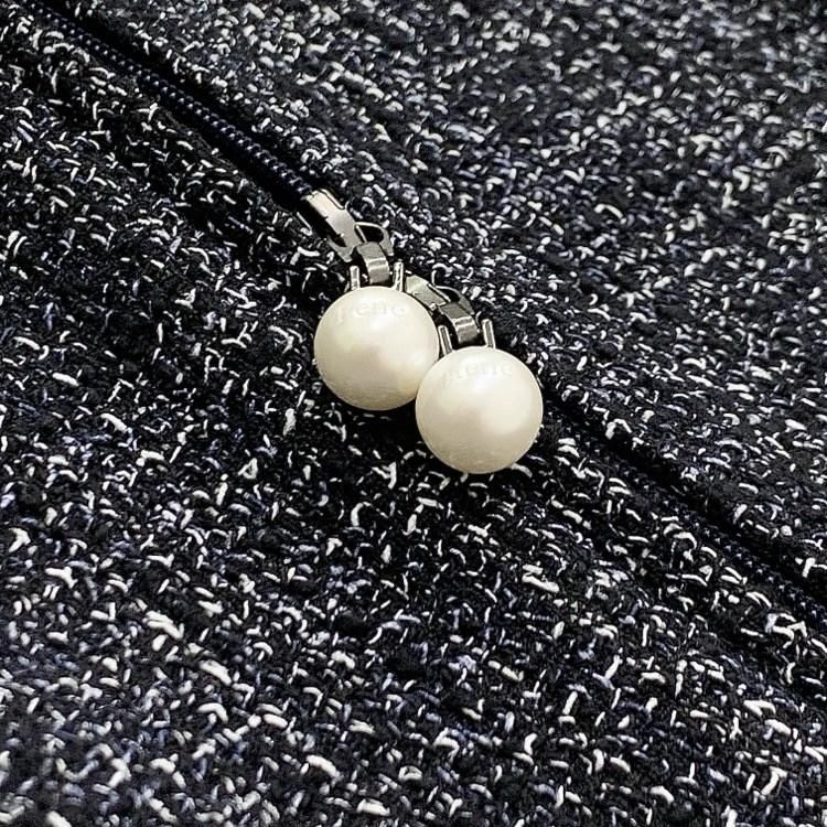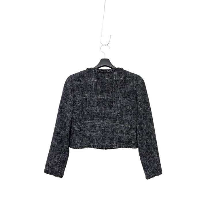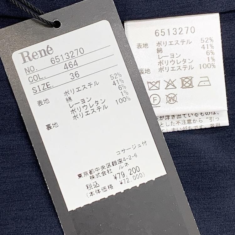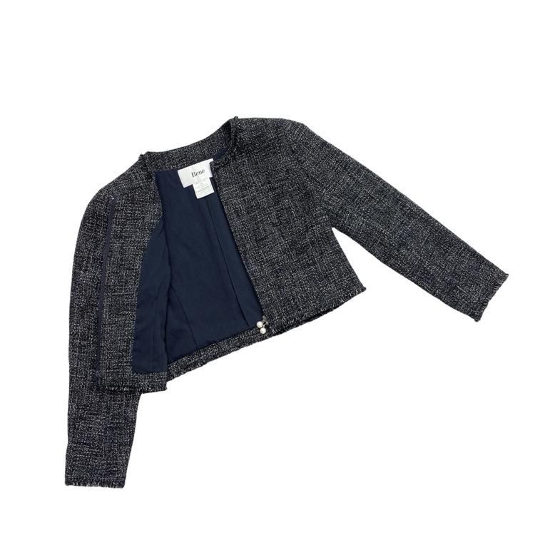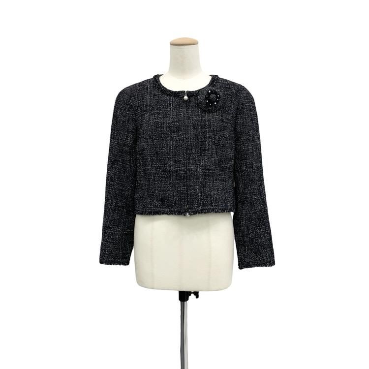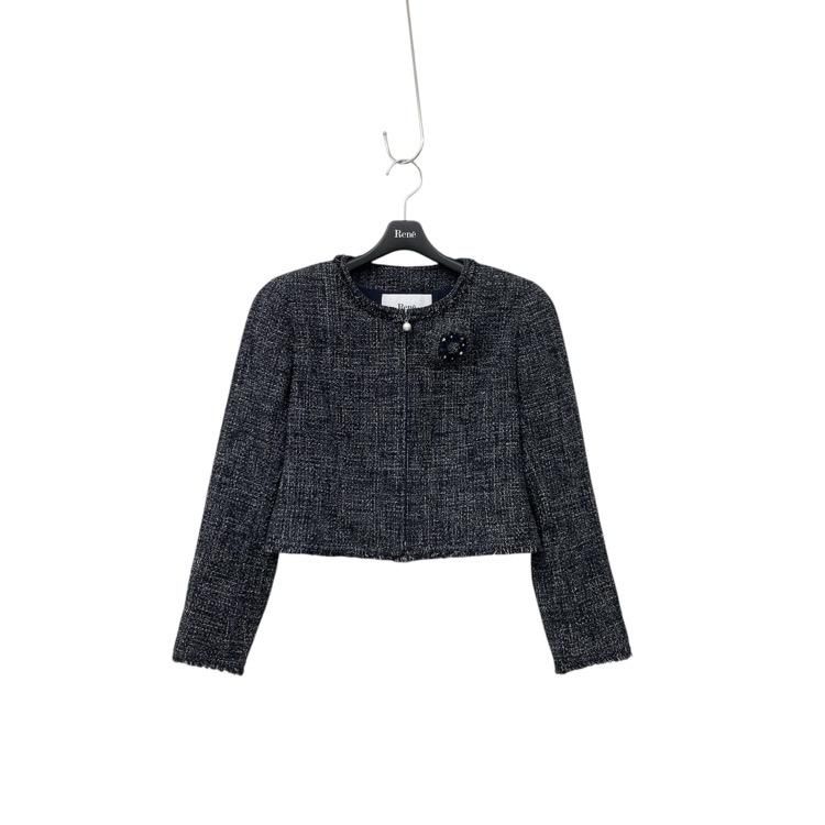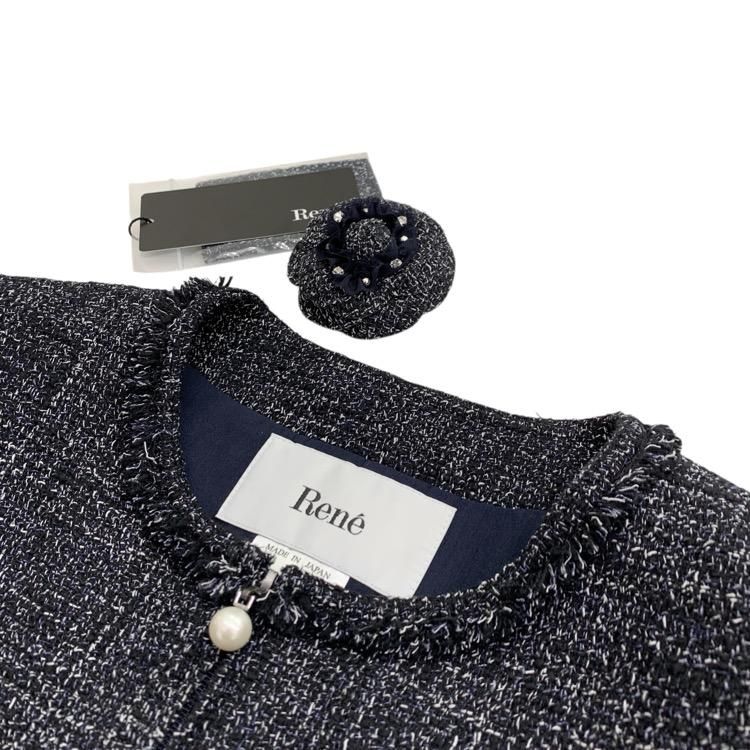 Rene ルネ ジップアップ ツイード ジャケット コサージュ付き ネイビー 36 6513270