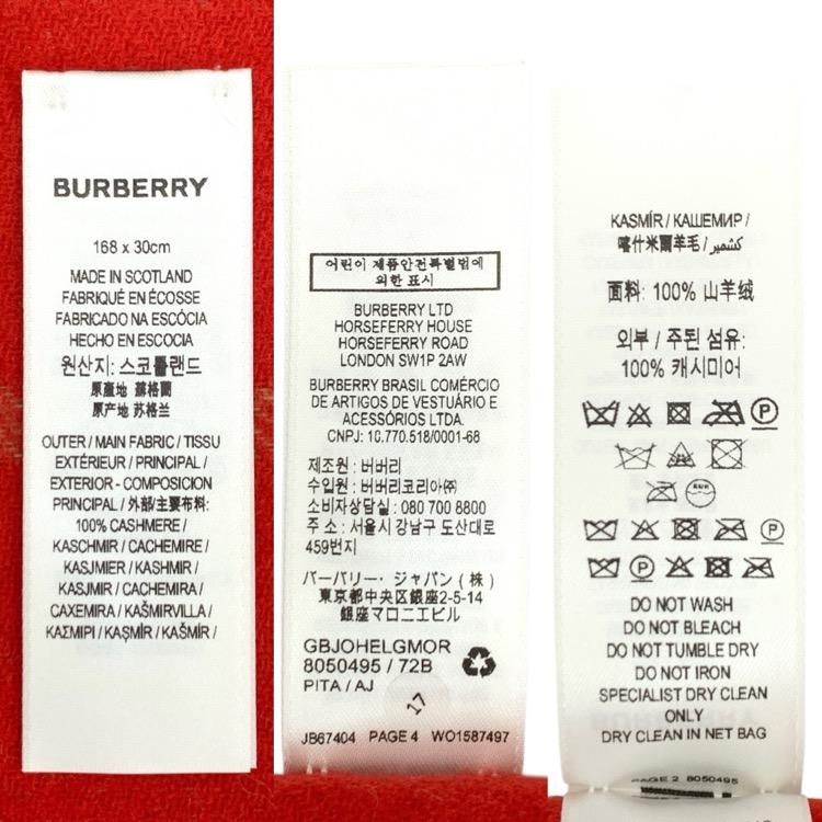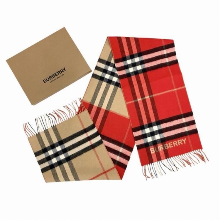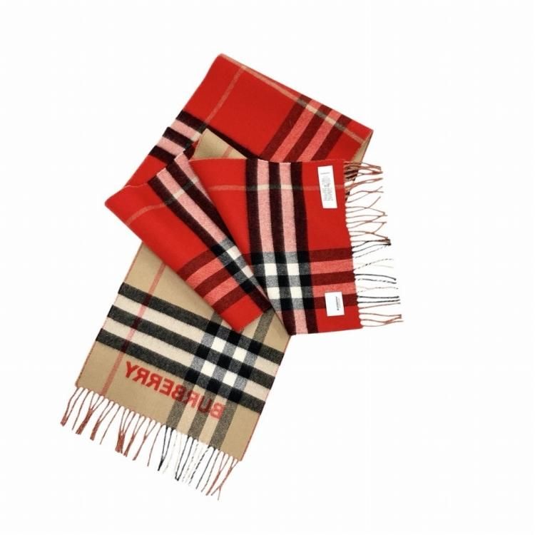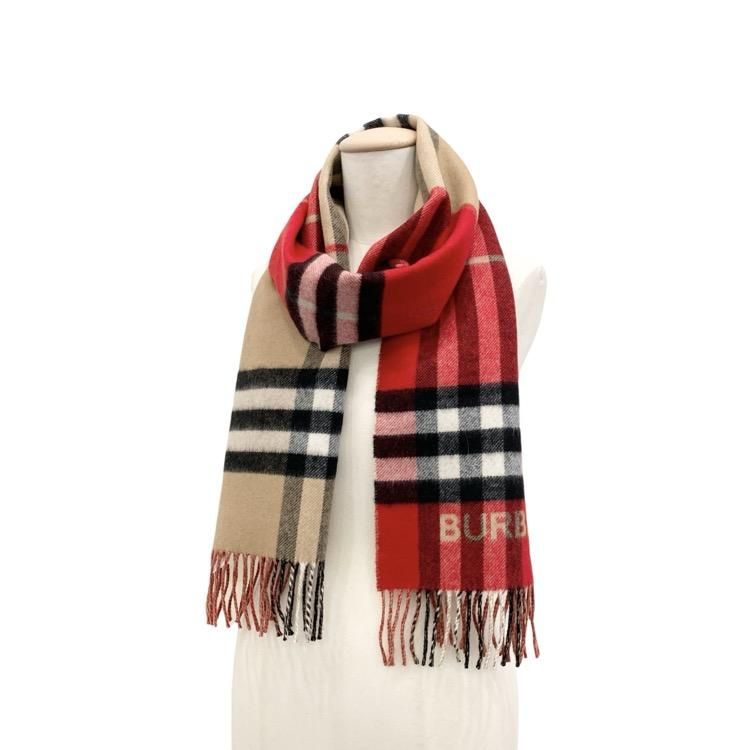 BURBERRY バーバリー コントラストチェック カシミアスカーフ マフラー ベージュ×レッド 8050495