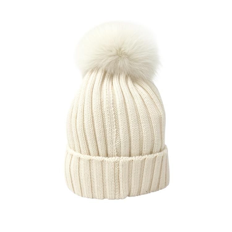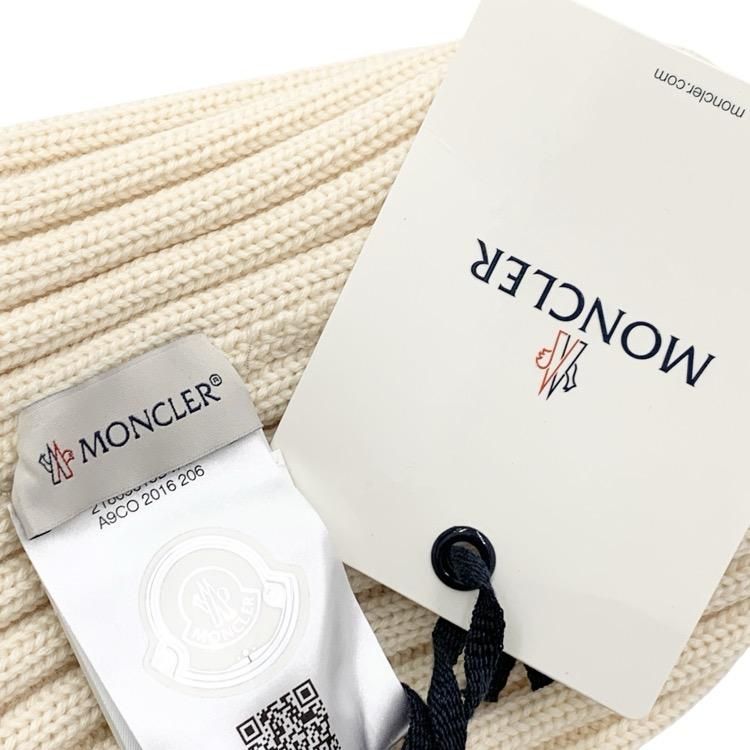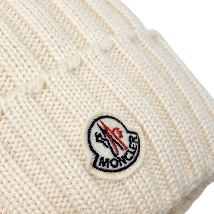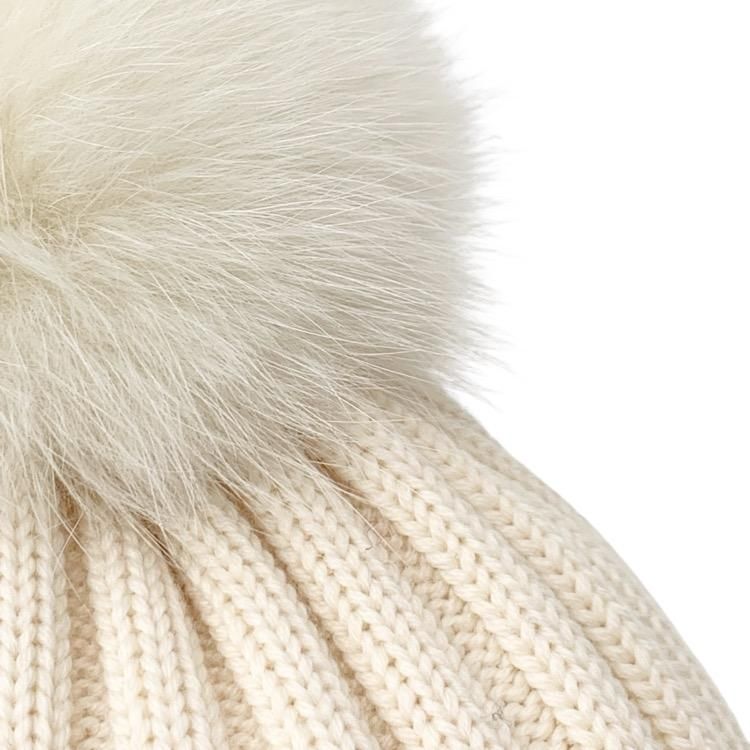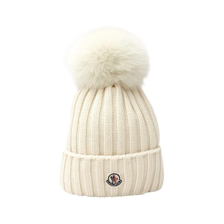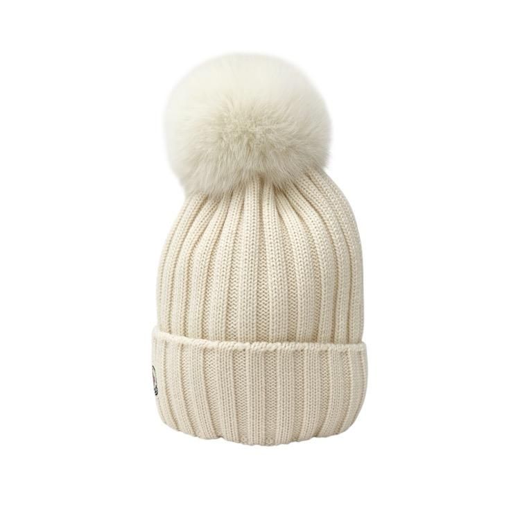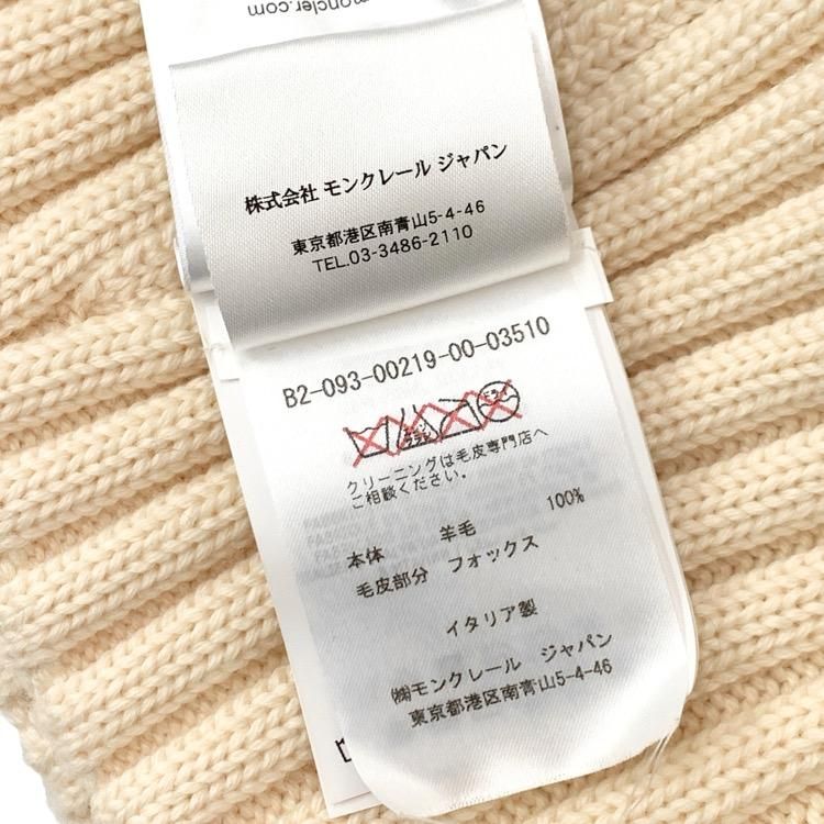 MONCLER モンクレール リブニットキャップ フォックスファー ニット帽 アイボリー B2-093-00219-00-03510