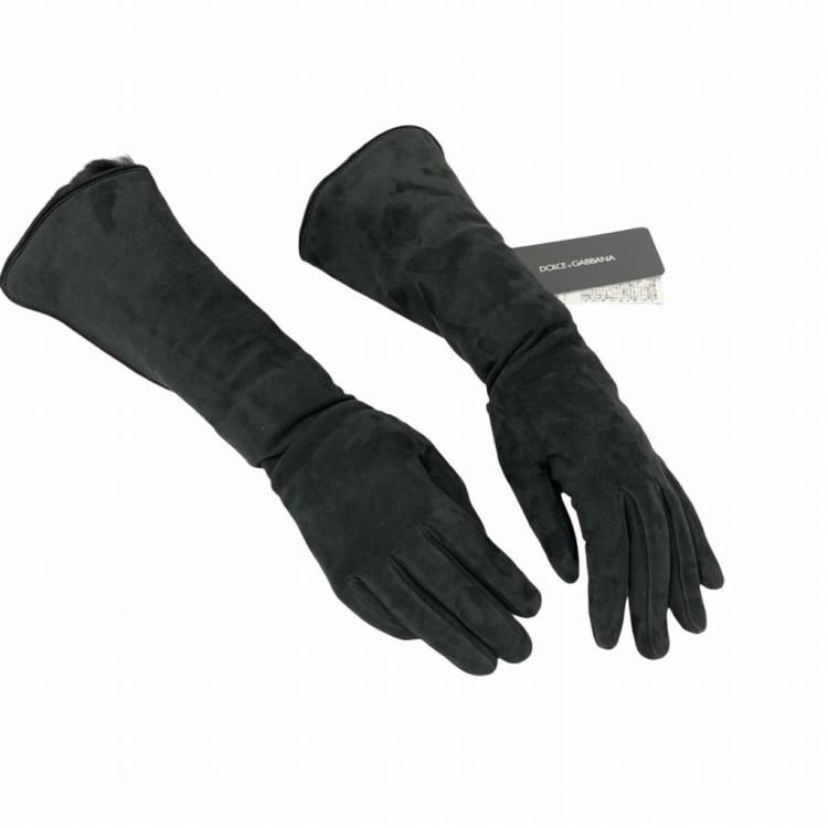 Dolce&Gabbana ドルチェ&ガッバーナ ゴートレザー&ラムファーロンググローブ スエード ブラック 7