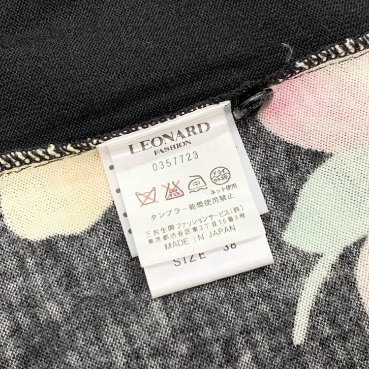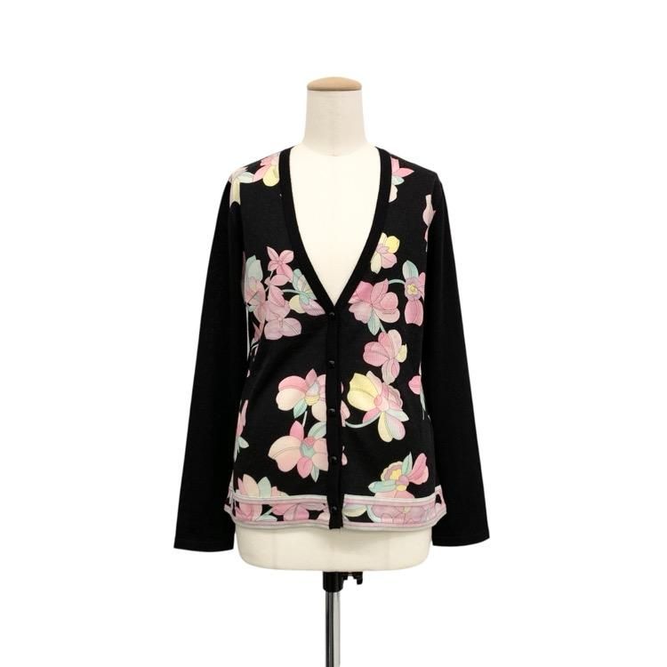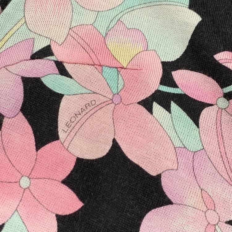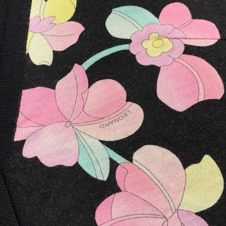 LEONARD レオナール シルクカシミヤ カーディガン フラワープリント 花柄 Vネック ブラック 38 0357723