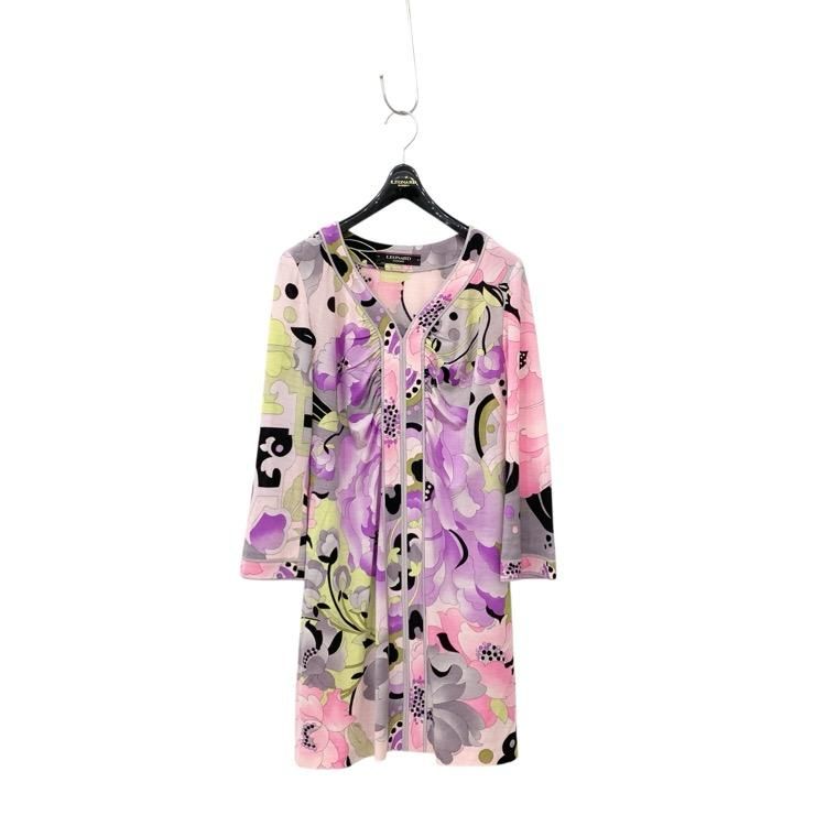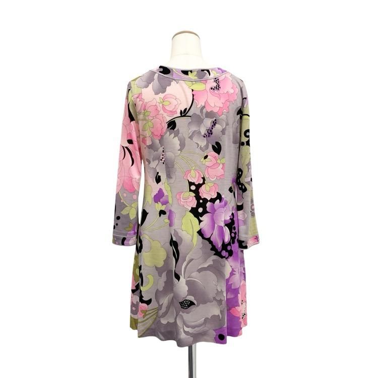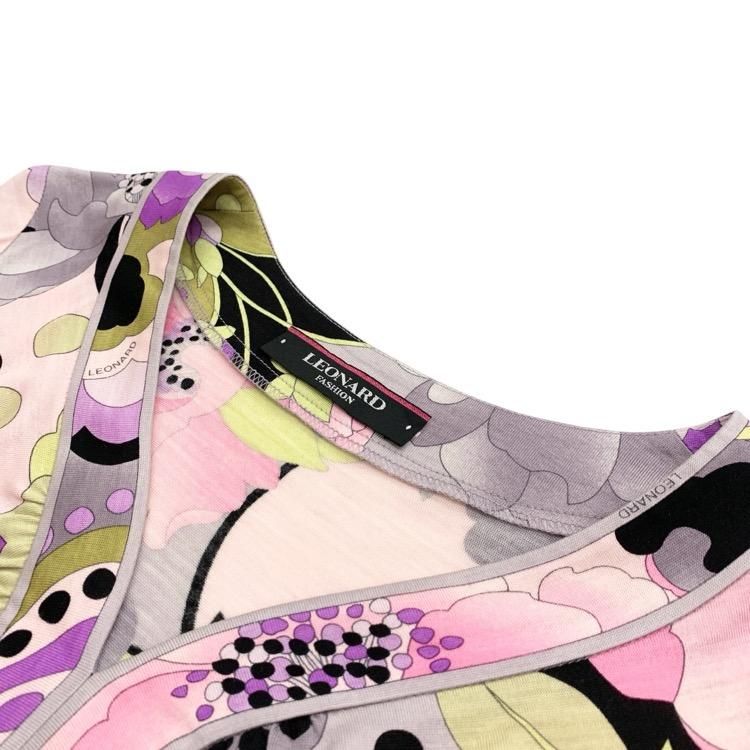 LEONARD レオナール ウールシルクチュニック カットソー フラワープリント 花柄 パープル 38 0389635