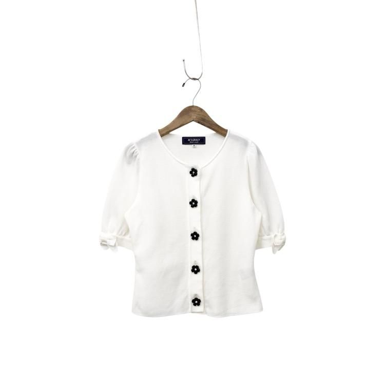 M'S GRACY エムズグレイシー フラワーボタン カーディガン ホワイト 38 918317