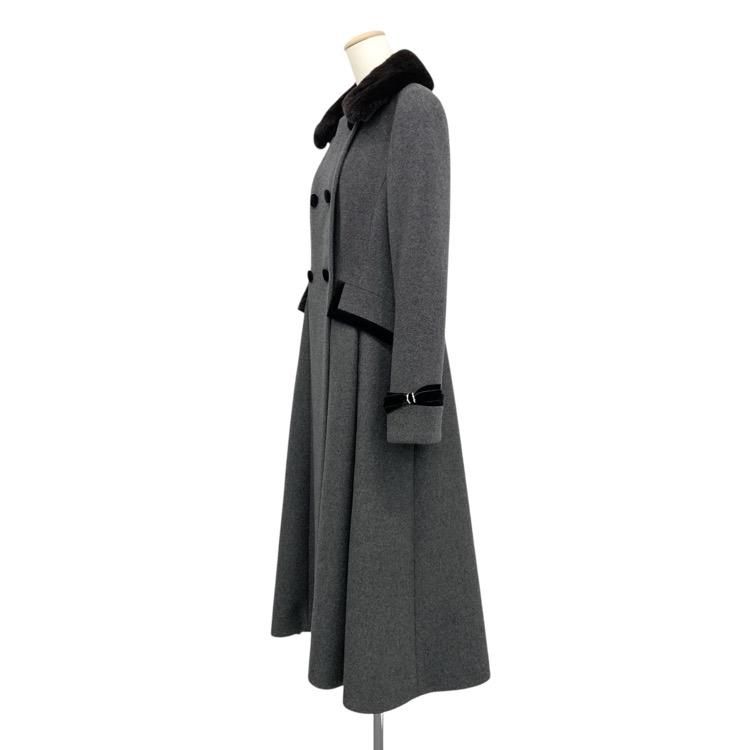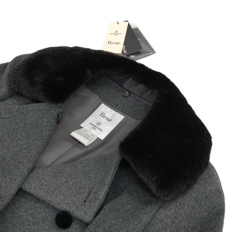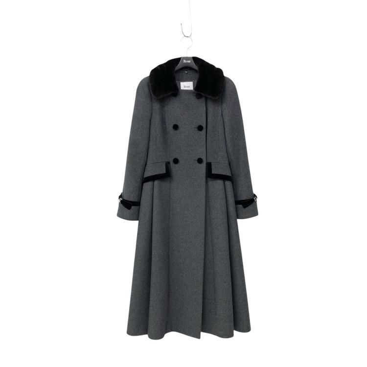 販売開始前Rene ルネ ミンク襟付ダブルブレストフレア コート コペンハーゲンファー チャコールグレー 38 6338040