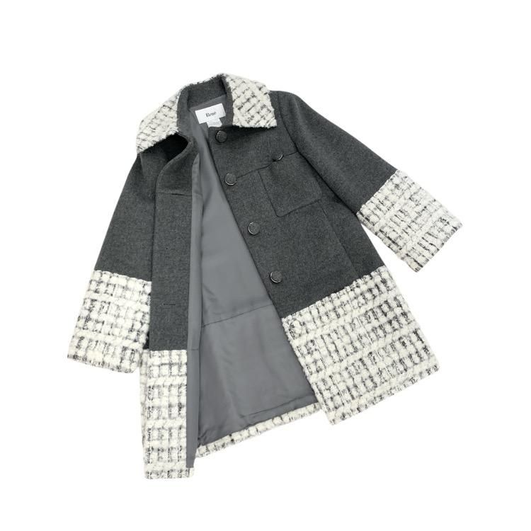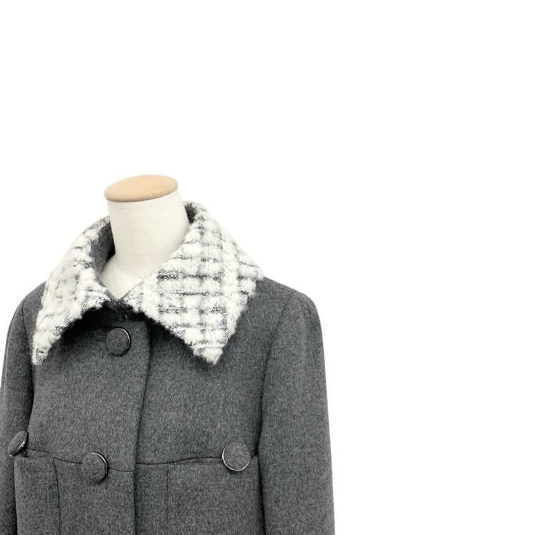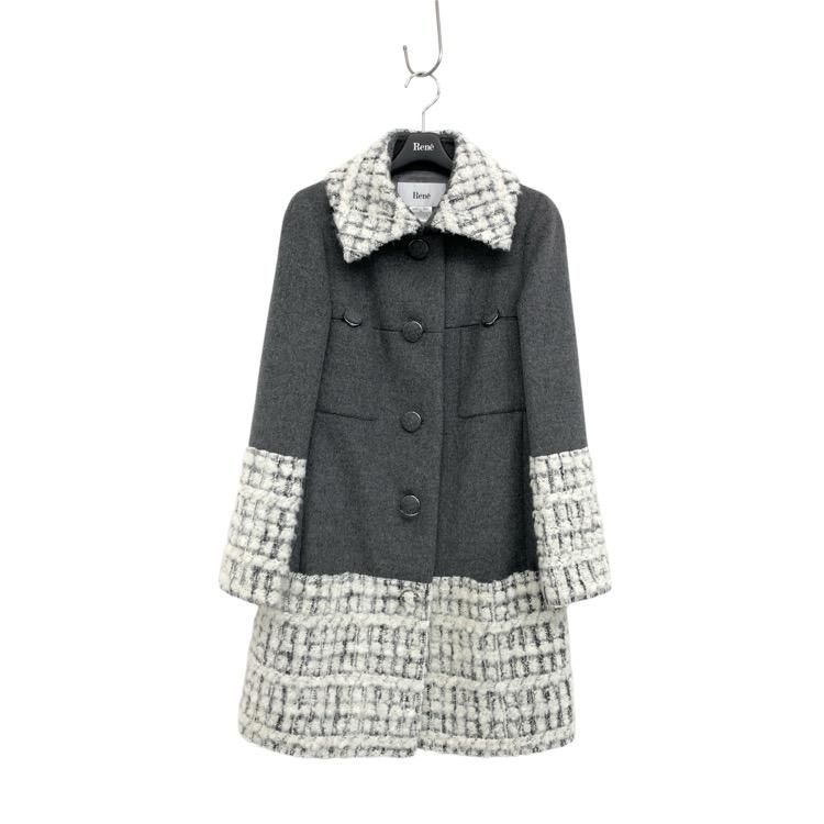販売開始前Rene ルネ ツイード切替ウール コート グレー 36 6943930