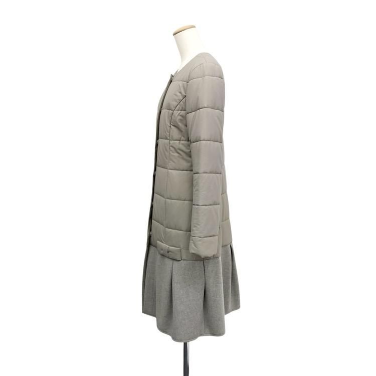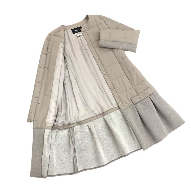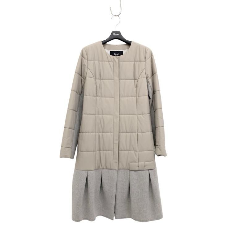 販売開始前Rene ルネ 中綿 切替 ノーカラーコート ベージュ 36 5048040
