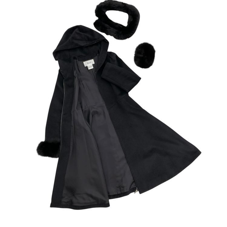 販売開始前Rene ルネ フォックスファー付フーディコート ブラック 34 6838160