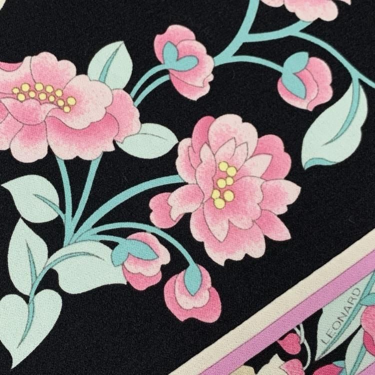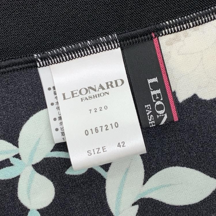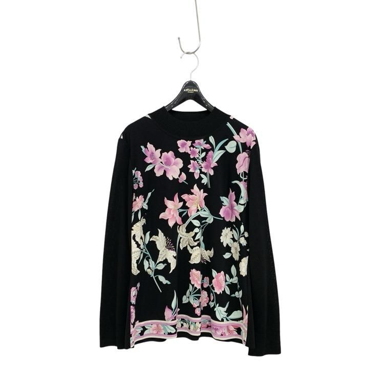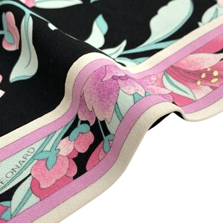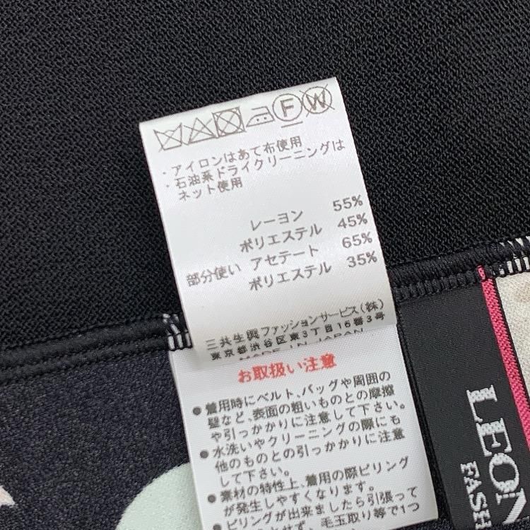 販売開始前LEONARD レオナール プリントブラウス カンカン素材 カットソー ブラック 42 0167210