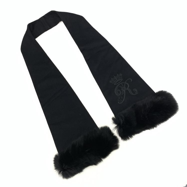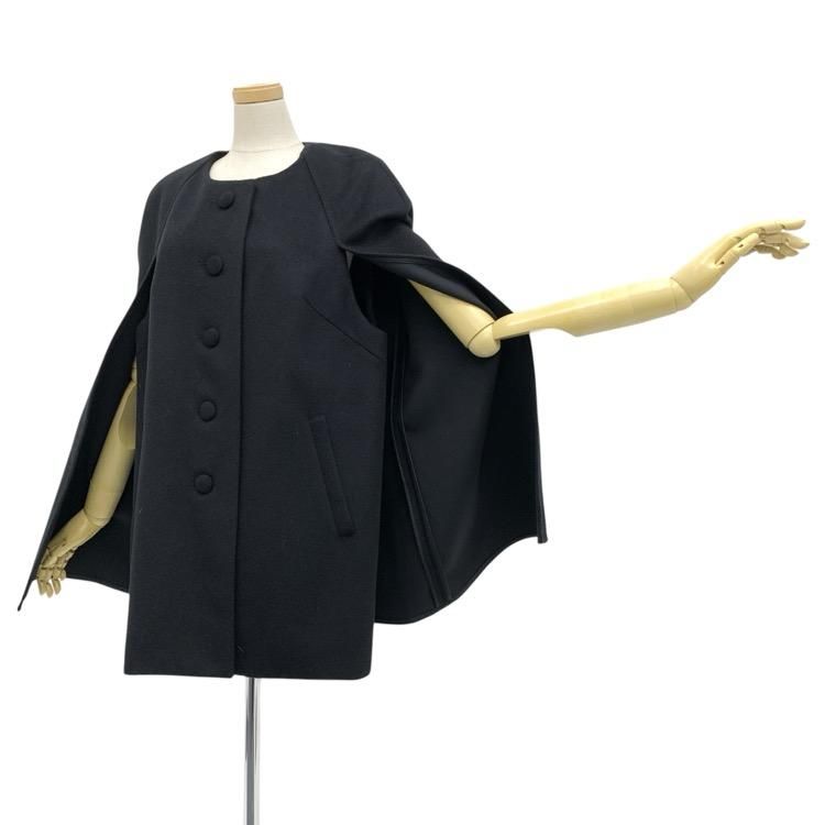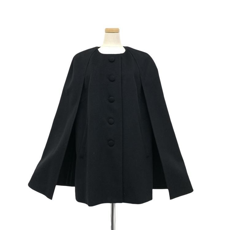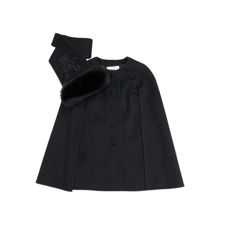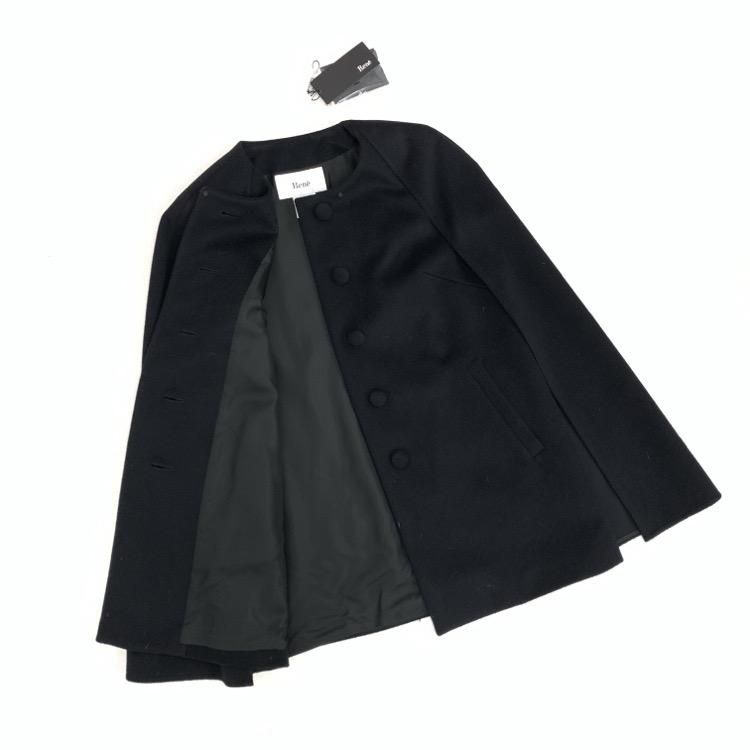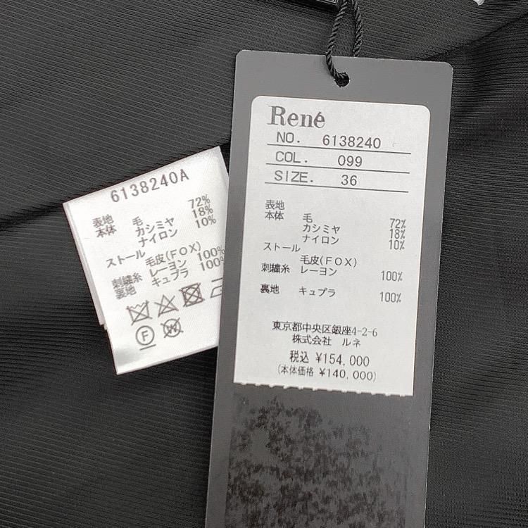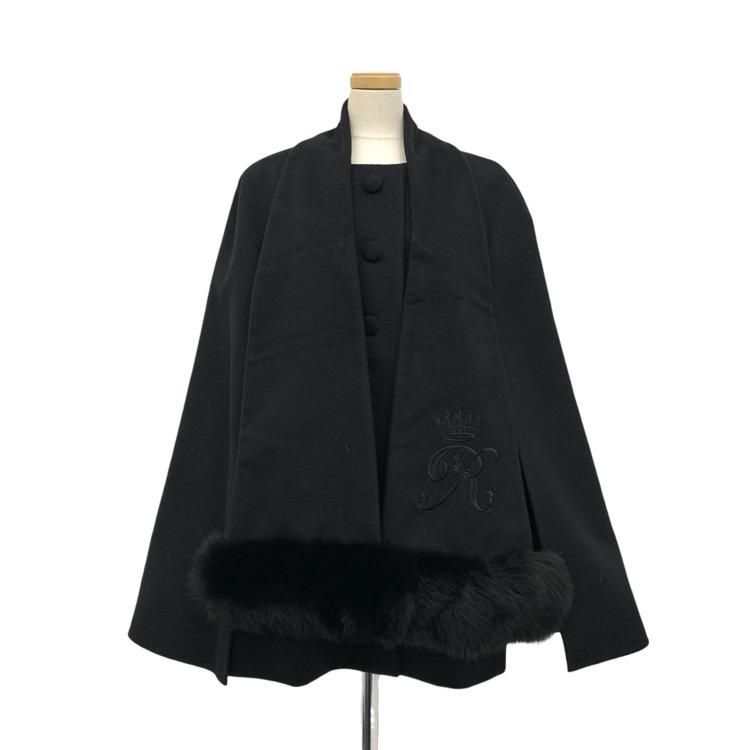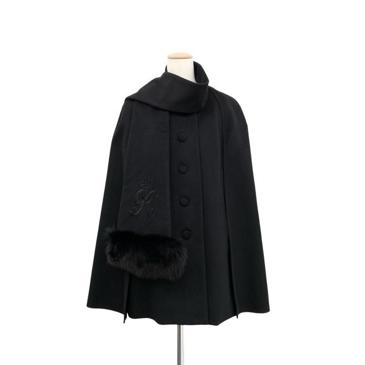 販売開始前Rene ルネ ストール付ケープ コート ポリー R刺繍 カシミヤ混 フォックスファー ブラック 36 6138240