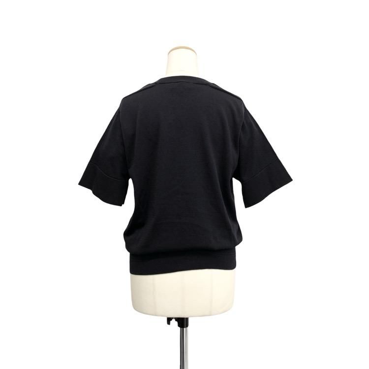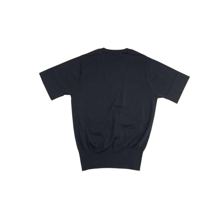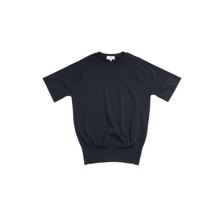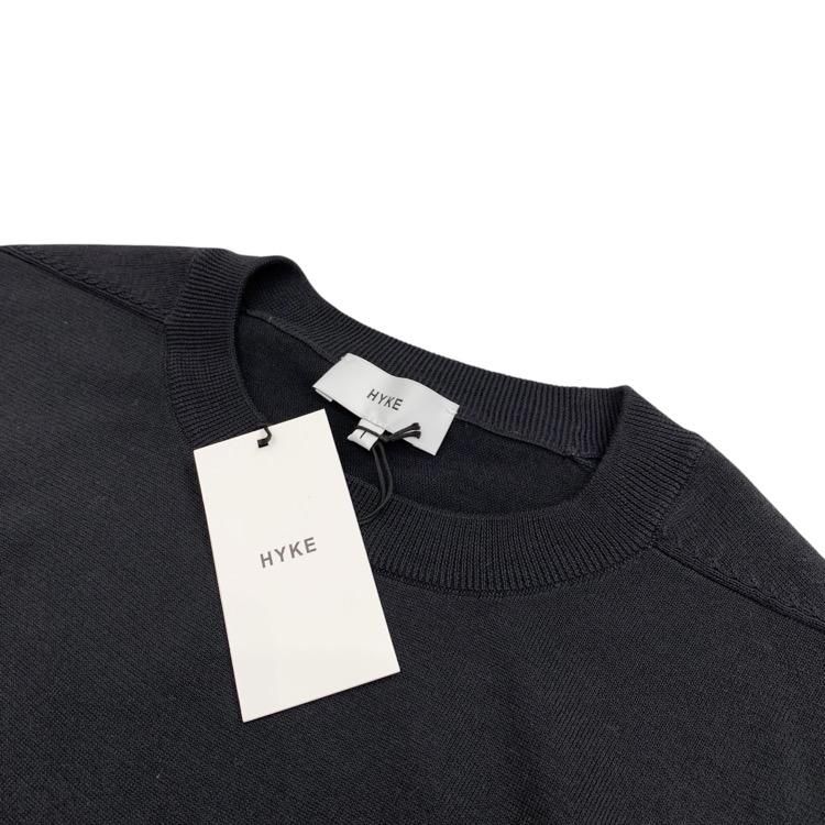 販売開始前HYKE ハイク CREW NECK HALF-SLV SWEATER ハイゲージニットトップス ネイビー 1 181-11129