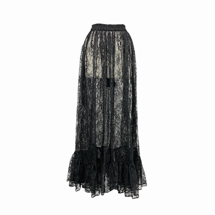 FUMIE=TANAKA フミエタナカ HEME LACE FRILL SK ヘムレースフリルスカート マキシ丈 ブラック 1 F24A-42