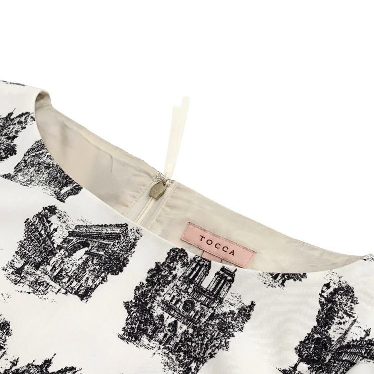 販売開始前TOCCA トッカ ICONS OF DREAM ドレス プリント ワンピース ホワイト×ブラック 00 OPTOCA0800