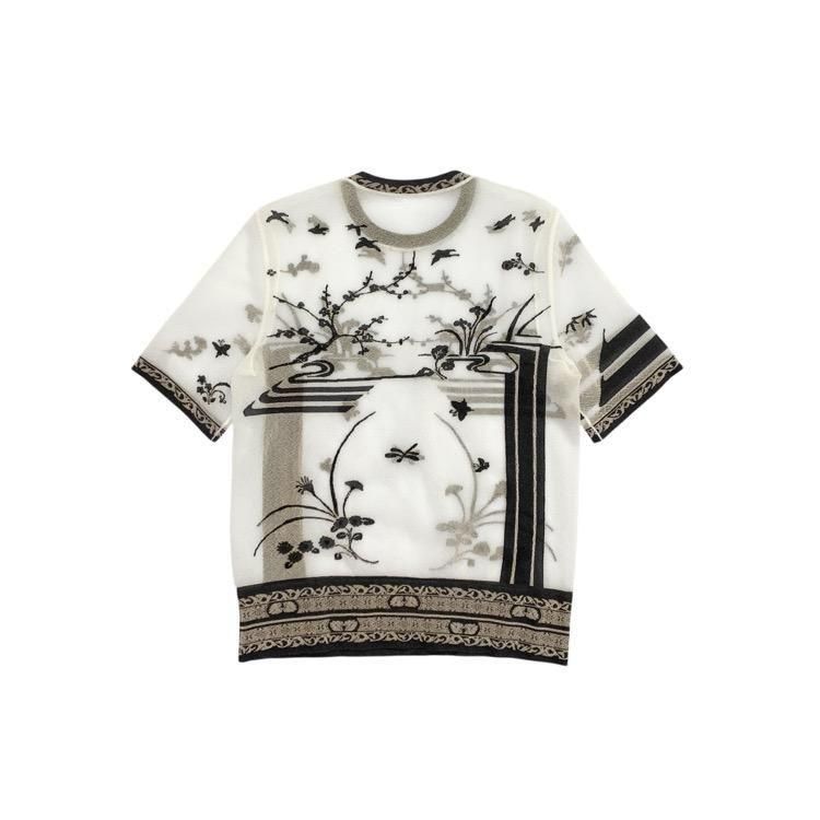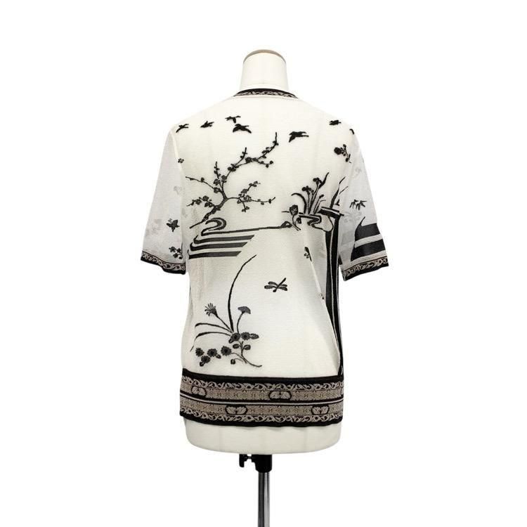 販売開始前Mame Kurogouchi マメクロゴウチ Nature Pattern Sheer Knitted Crew Neck Top ジャカードシアー トップス