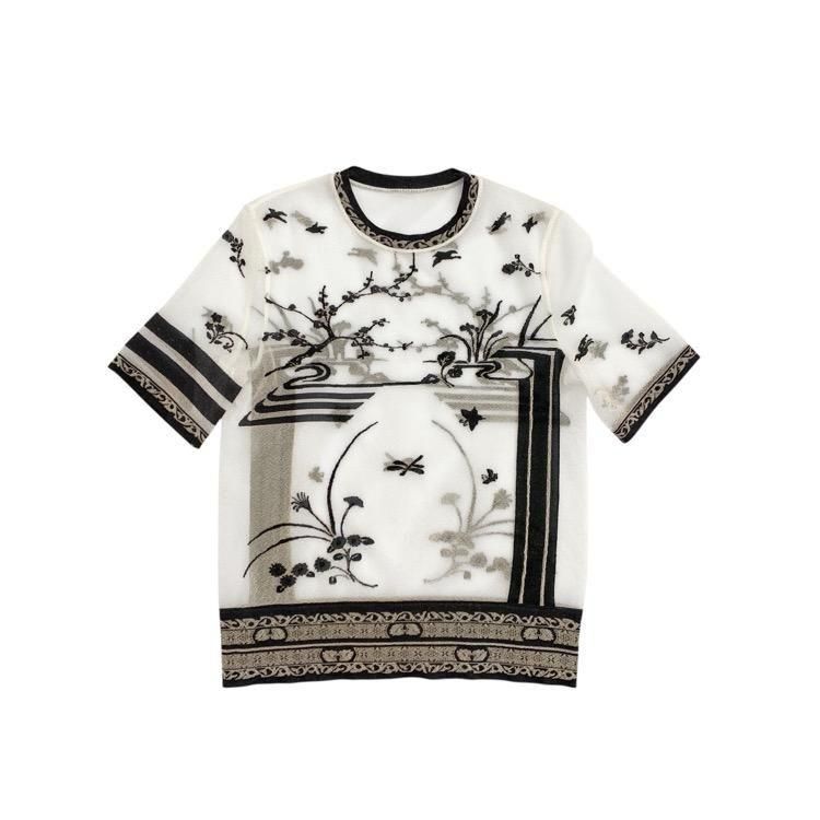 ■商品名 Nature Pattern Sheer Knitted Crew Neck Top