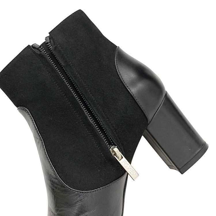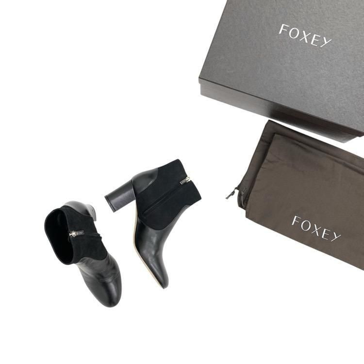 販売開始前FOXEY フォクシー チャンキーヒール ショート ブーツ レザー ブラック 36