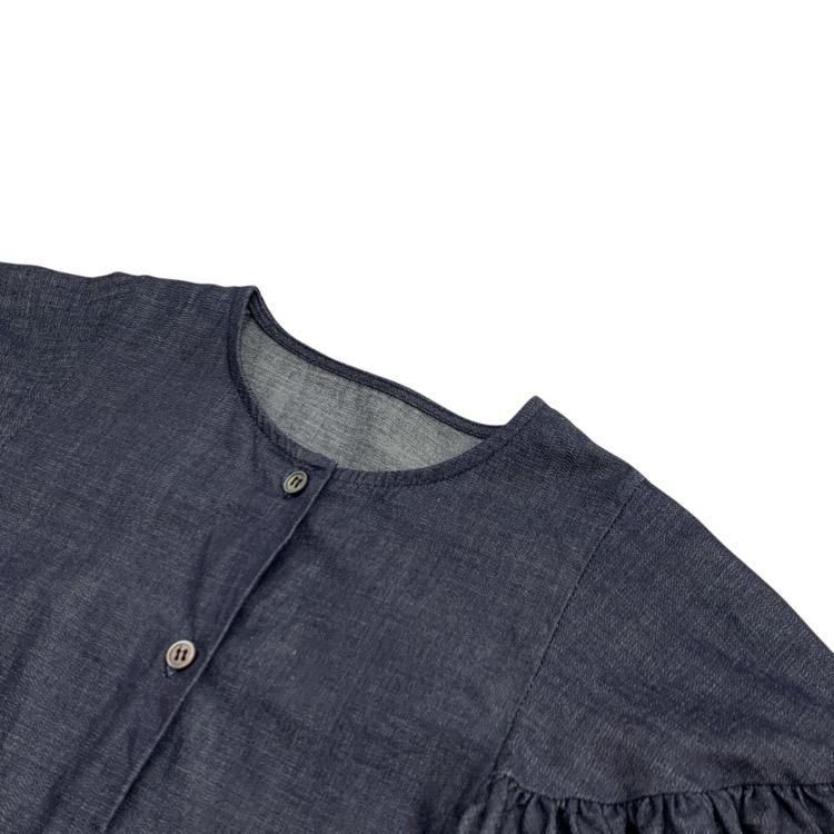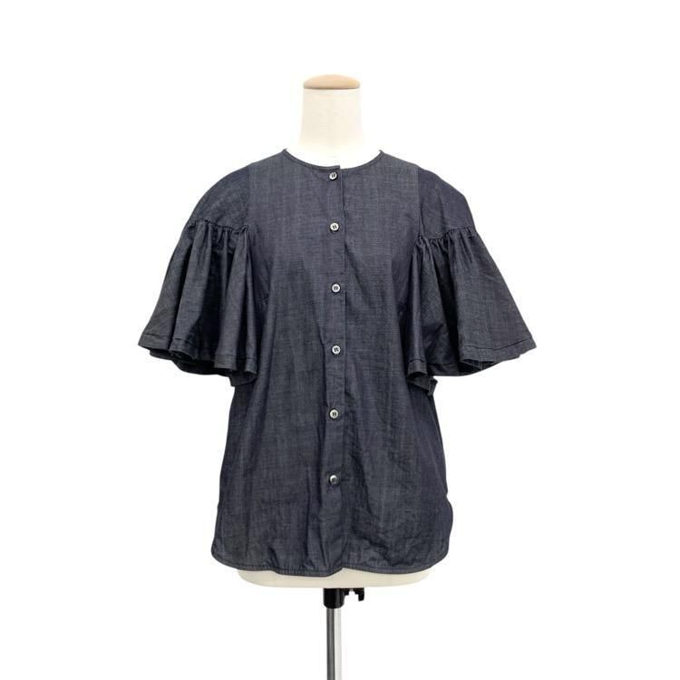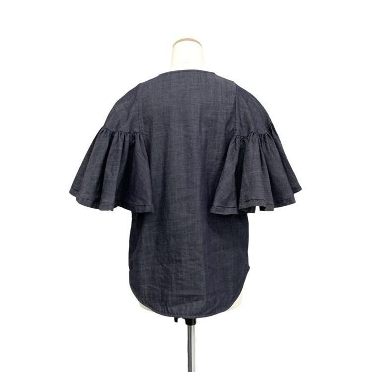 販売開始前aLORS アロー Estelle jean エステルジーン デニム袖フリル ブラウス インディゴ M-L