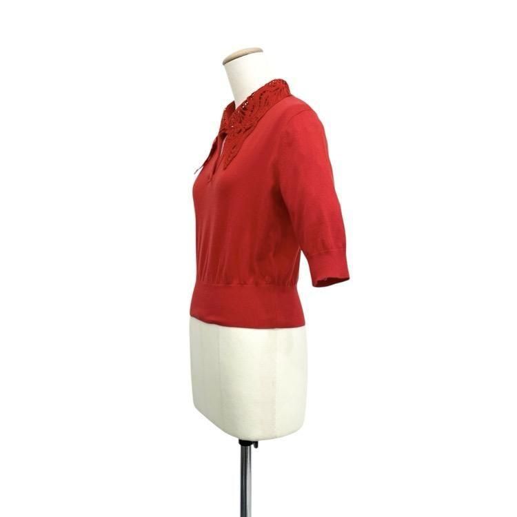 販売開始前Mame Kurogouchi マメクロゴウチ Embroidery Collar Knitted Top コード刺繍襟ニットトップ 2 MM25FW-KN037
