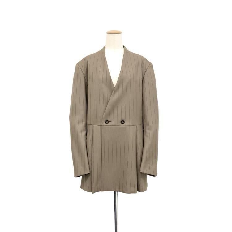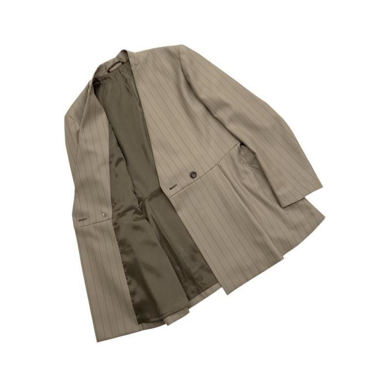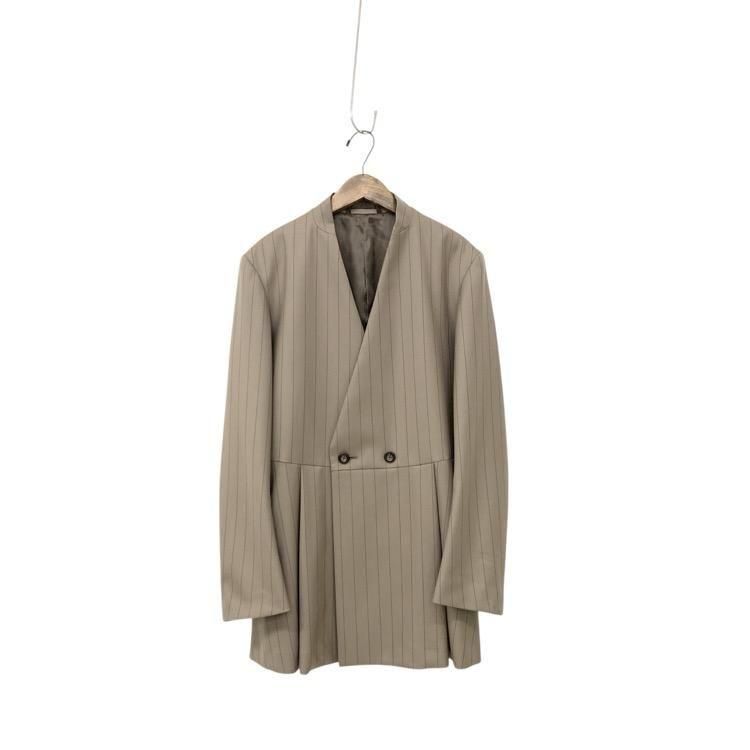 販売開始前UJOH ウジョー ピンストライプノーカラー ジャケット ブラウン 3 U754-J05-102