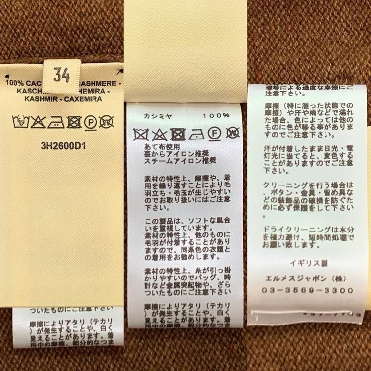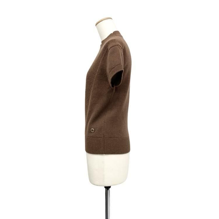 販売開始前HERMES エルメス 半袖ニット トップ カシミヤ セリエ ブラウン 34 3H2600D1