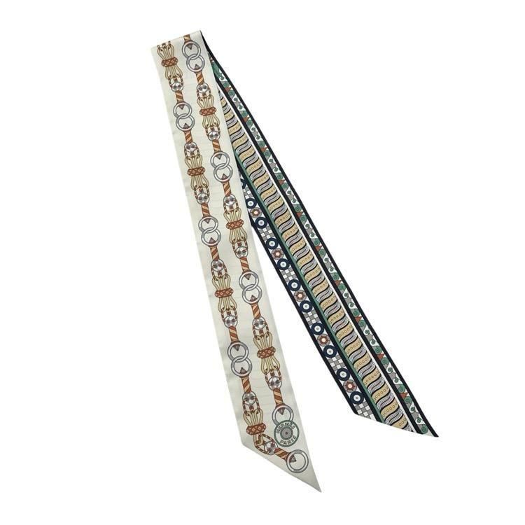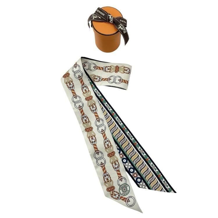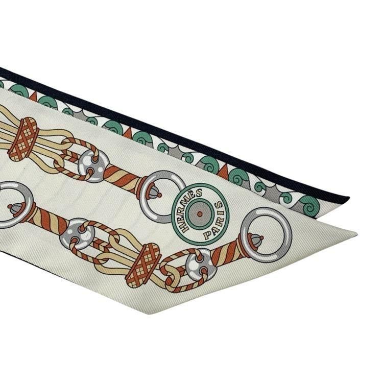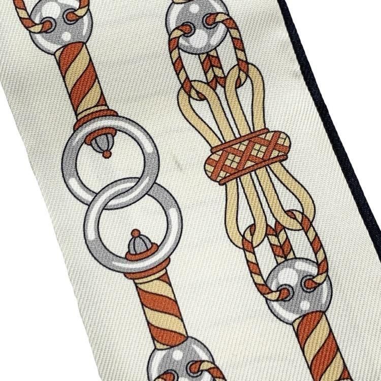HERMES エルメス ツイリー スカーフ Harnais en Rosace ハーネスの薔薇窓 クリーム ブラック