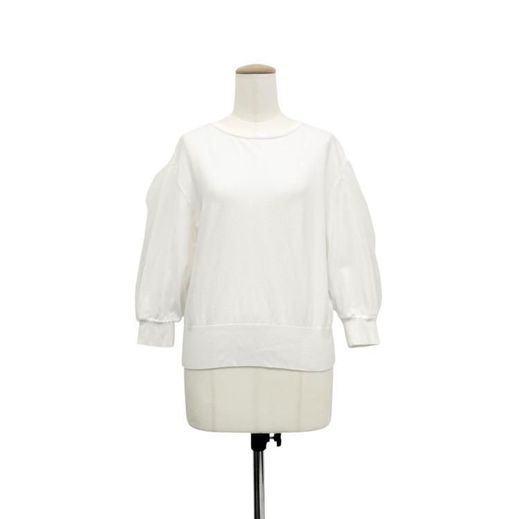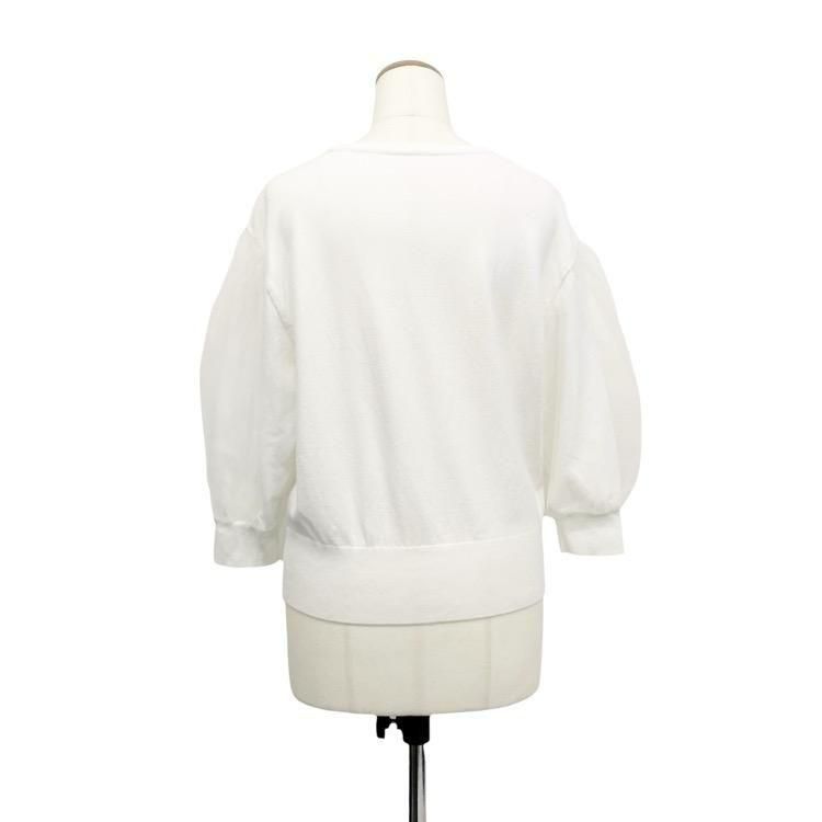 FOXEY フォクシー ニットトップ バルーン チュールスリーブ ホワイト 38 41847-KSTOF