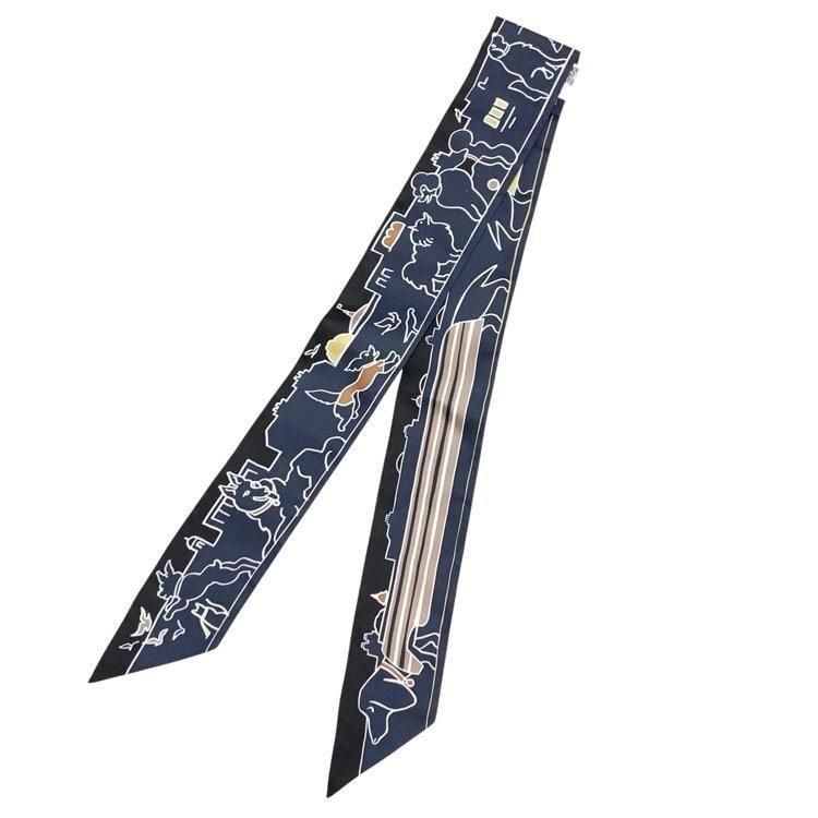 HERMES エルメス ツイリー Les Chiens Parisiens パリジャンの犬 シルクスカーフ ブラック ネイビー064116S