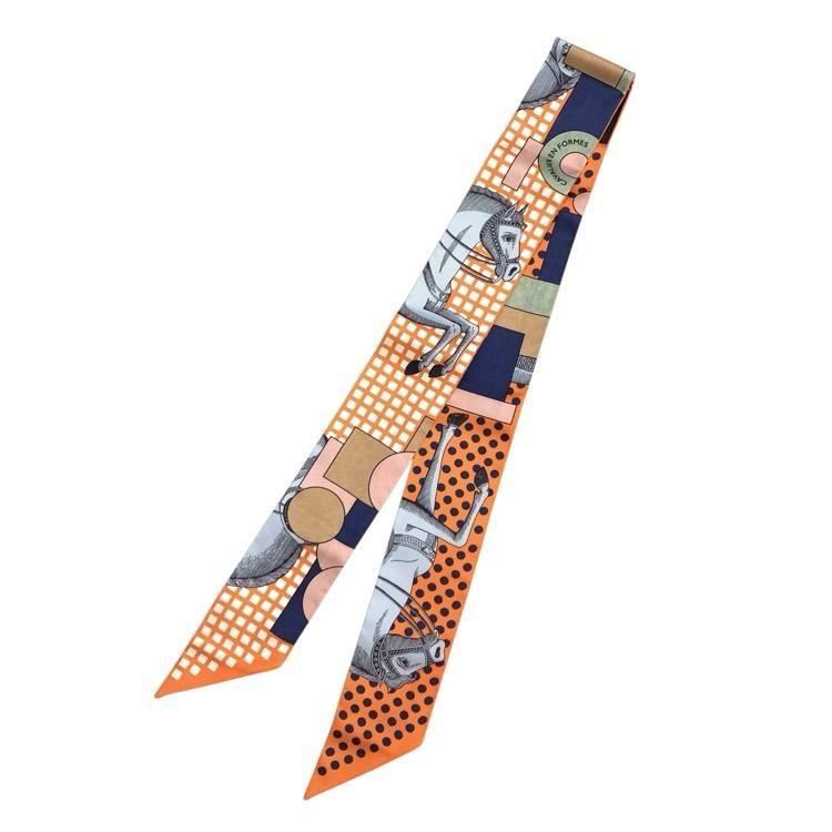 HERMES エルメス ツイリー Cavalier en Formes シルクスカーフ コライユ/ブルー/キャメル